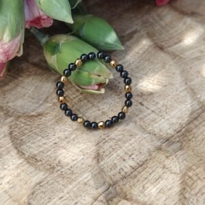 • naturalny czarny onyks, złoty hematyt 2 mm