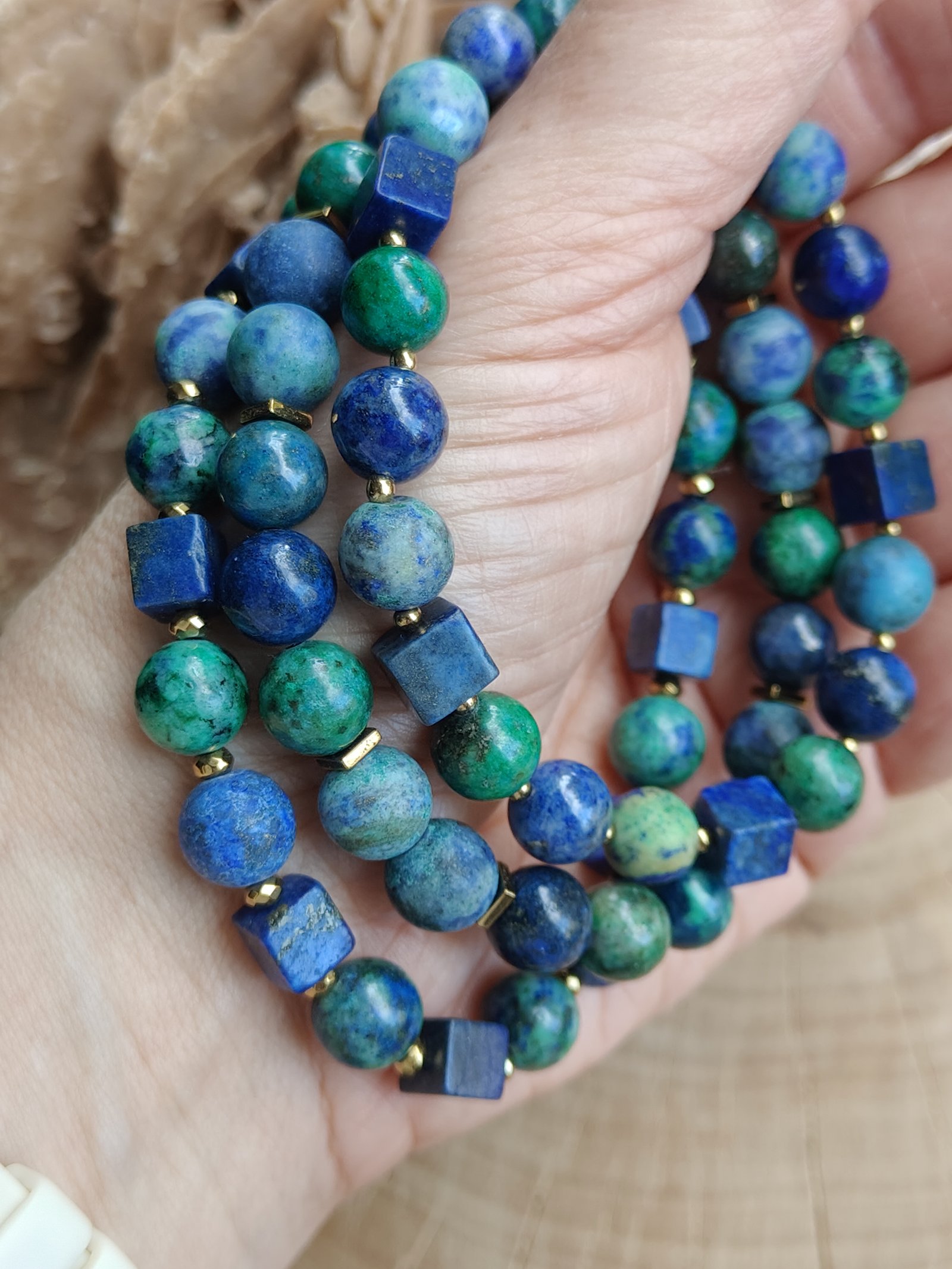 Ten komplet bransoletek to idealne połączenie naturalnego piękna, elegancji i energii natury – doskonały zarówno na co dzień, jak i jako wyjątkowy dodatek do bardziej oficjalnych zestawów