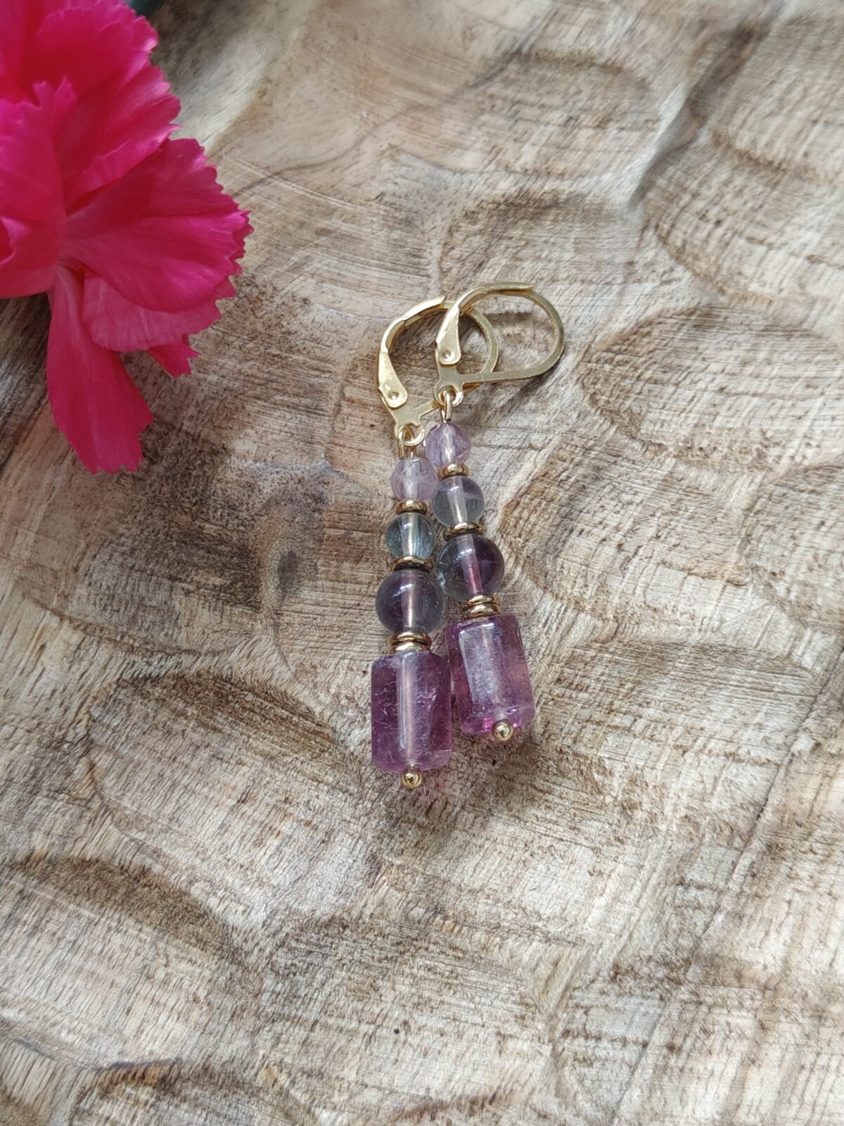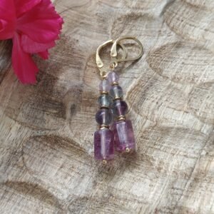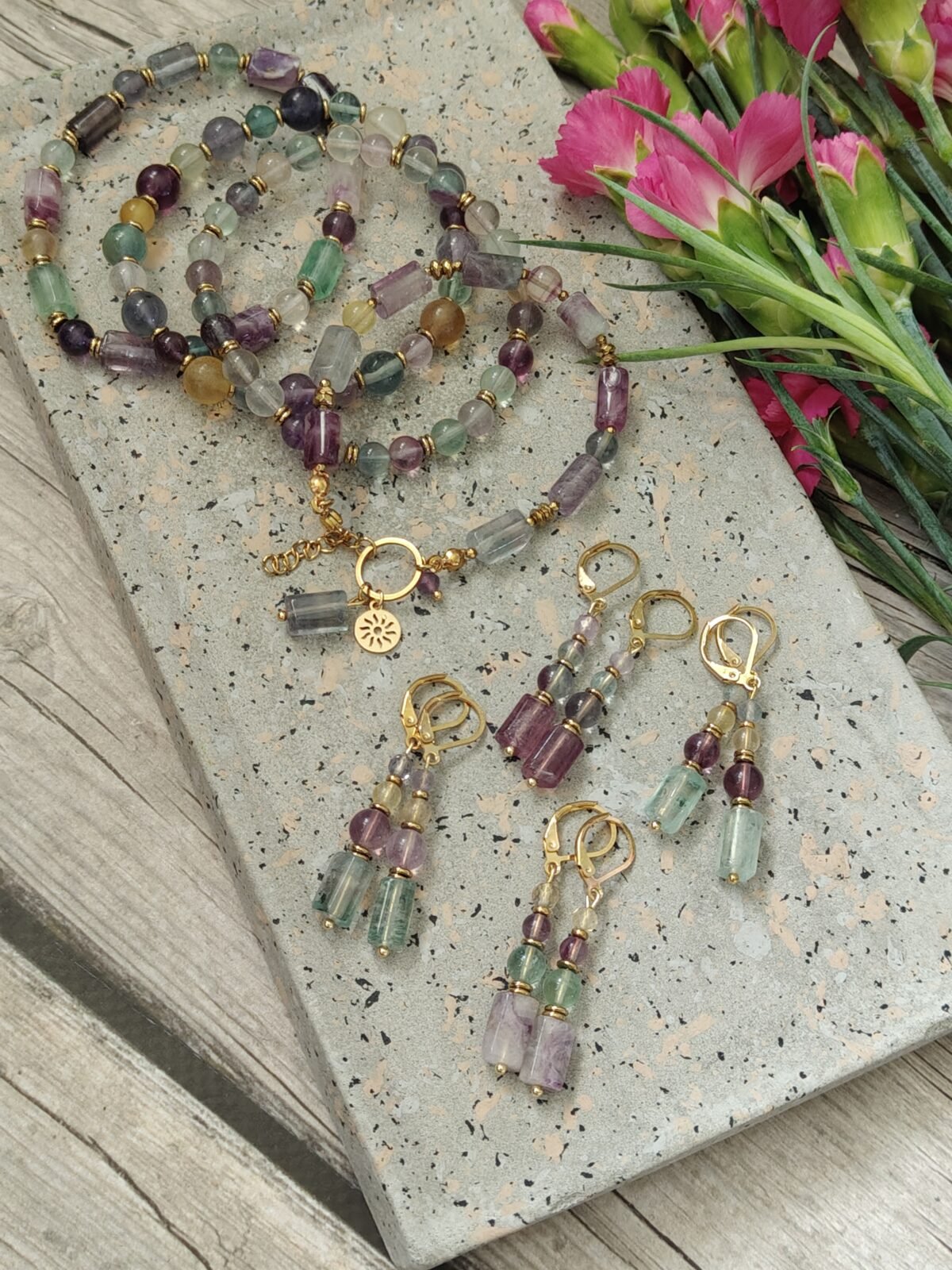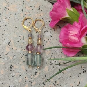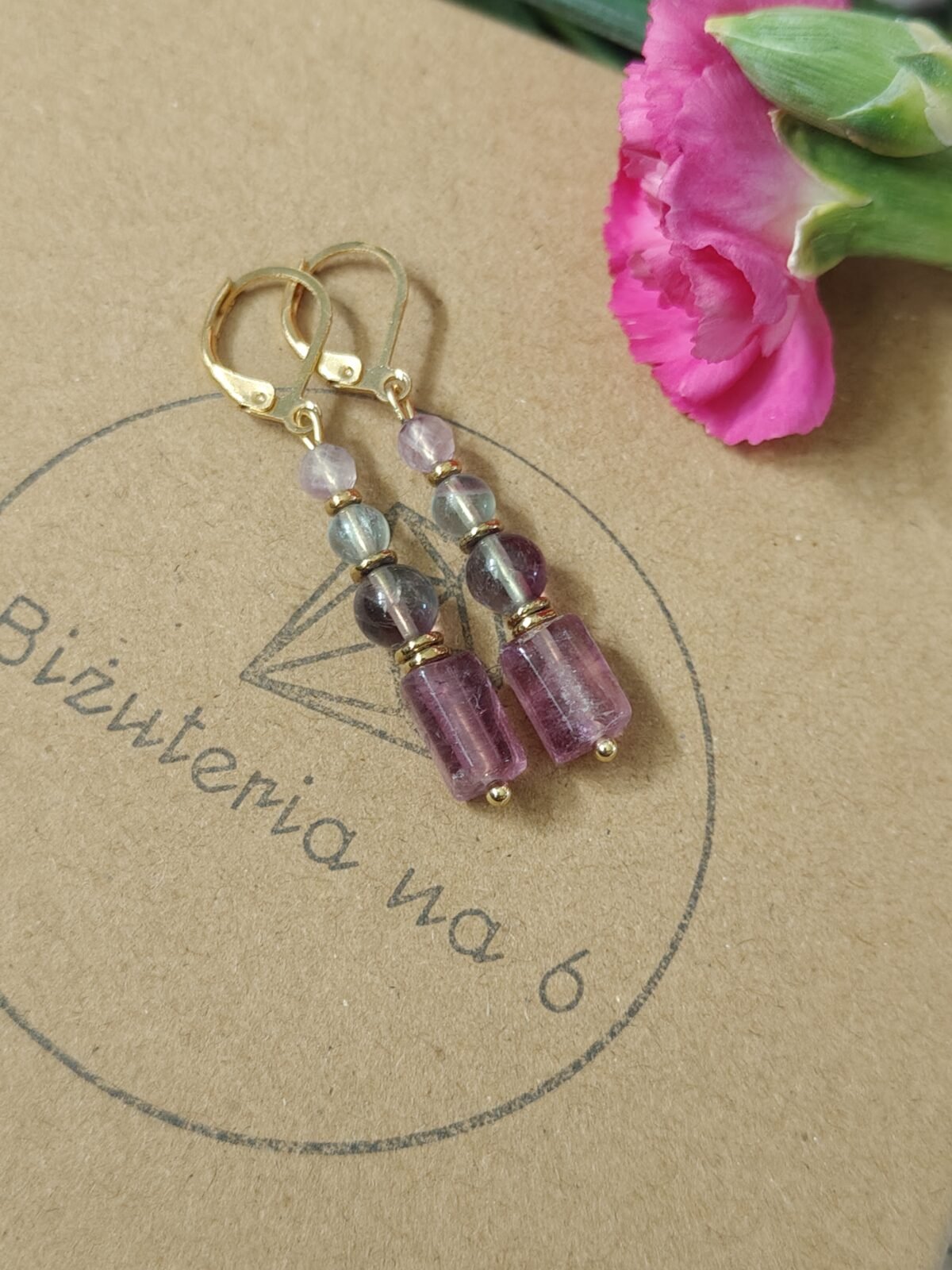 Kolczyki zostały osadzone na wygodnych i bezpiecznych biglach angielskich ze stali, które zapewniają trwałość oraz komfort noszenia – także dla osób o wrażliwej skórze. Naturalny fluoryt wyróżnia się pięknymi odcieniami zieleni, fioletu, i słoneczną żółcią dzięki czemu każdy egzemplarz jest unikalny.