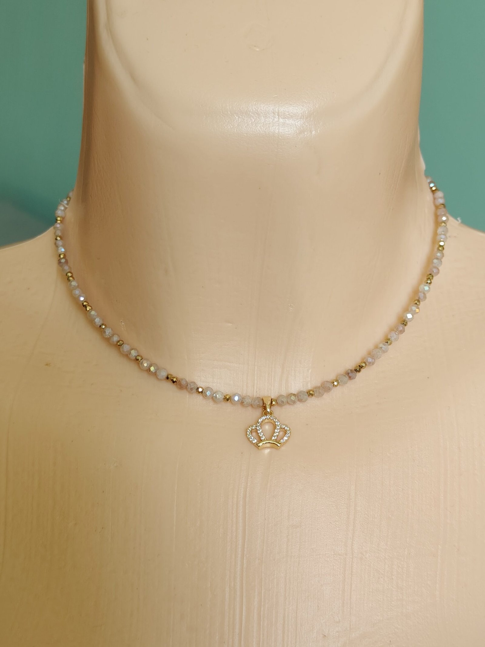 Odkryj swoją wewnętrzną siłę i blask z kompletem „Królowa Blasku”, na który składają się elegancki choker i dopasowana bransoletka wykonane z metalizowanego kamienia słonecznego. Kamień ten, znany ze swojej ciepłej, iskrzącej poświaty, symbolizuje radość, energię i pewność siebie. Całość dopełnia subtelna zawieszka w kształcie korony – emblemat królewskiego charakteru i kobiecej mocy.