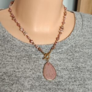 Kamienie- rodonit, perła hodowlana 4 mm, złoty hematyt 2 mm