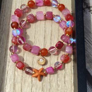 Ten komplet bransoletek z kamieni naturalnych doskonale sprawdzi się zarówno jako codzienny dodatek, jak i oryginalne uzupełnienie letnich stylizacji. Możesz nosić je razem, tworząc modny, warstwowy zestaw, lub osobno – dopasowując do swojego stylu.