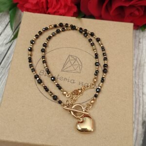 Naszyjnik z czarnego turmalinu w formie delikatnych, fasetowanych kulek 3 i 4 mm, przełamany akcentami złotego hematytu, to połączenie subtelnego blasku, ochronnej energii i elegancji.
